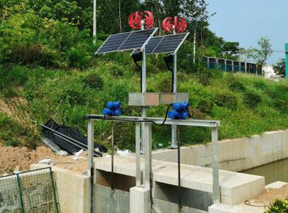 由太陽(yáng)能光伏板和小型風(fēng)力發(fā)電機(jī)為蓄能電池組充電,電池組有BMS電池管理軟件管控,為永磁無刷直流電機(jī)的各類驅(qū)動(dòng)裝置供電,同時(shí)為視頻監(jiān)控,壓力、流量、液位傳感器,照明等供電